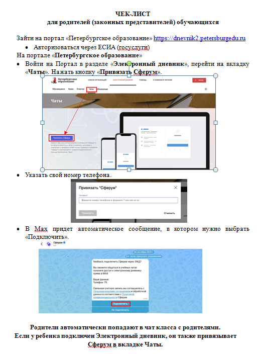 и автоматически присоединиться к школе и получить статус «Родитель». Для этого необходимо выполнить действия согласно чек-листа.